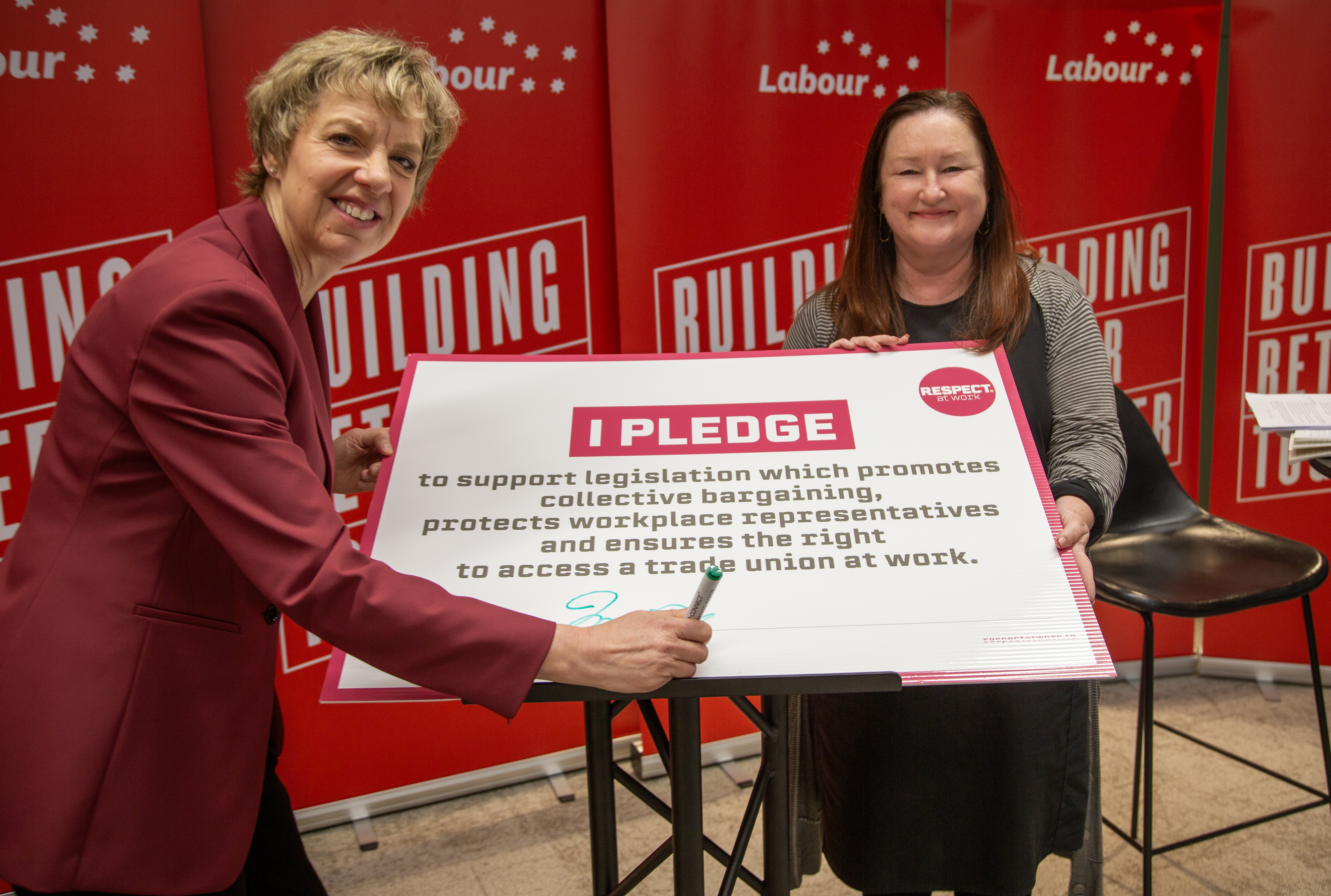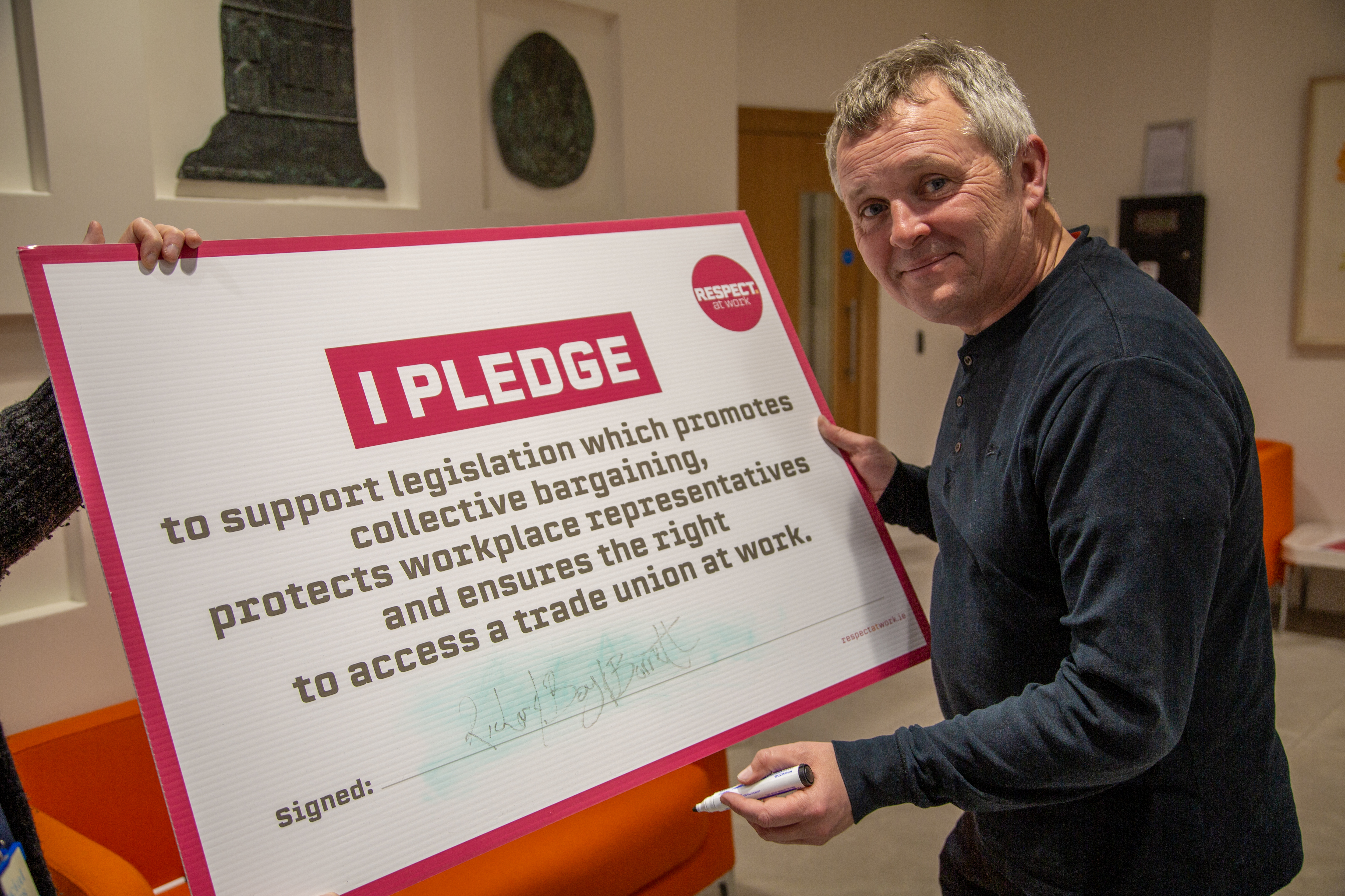 “I pledge to support legislation which promotes collective bargaining, protects workplace representatives and ensures the right to access a trade union at work.”